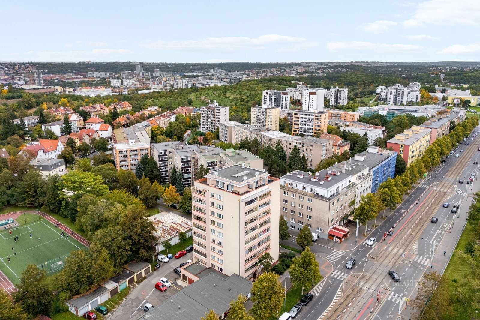 Lokalita a dostupnost: oblíbená adresa s množstvím zeleně – Parukářka, Židovské pece, v širším okolí Vítkov. Sport a volný čas zajišťuje areál Pražačka (bazén, koupaliště, fitness, kurty). MHD v bezprostřední docházce, rychlé spojení do centra. Pro řidiče výborné napojení na Městský okruh / Štěrboholskou radiálu i dálniční směry. Kompletní občanská vybavenost v okolí (obchody, služby, oblíbená cukrárna, sportoviště).