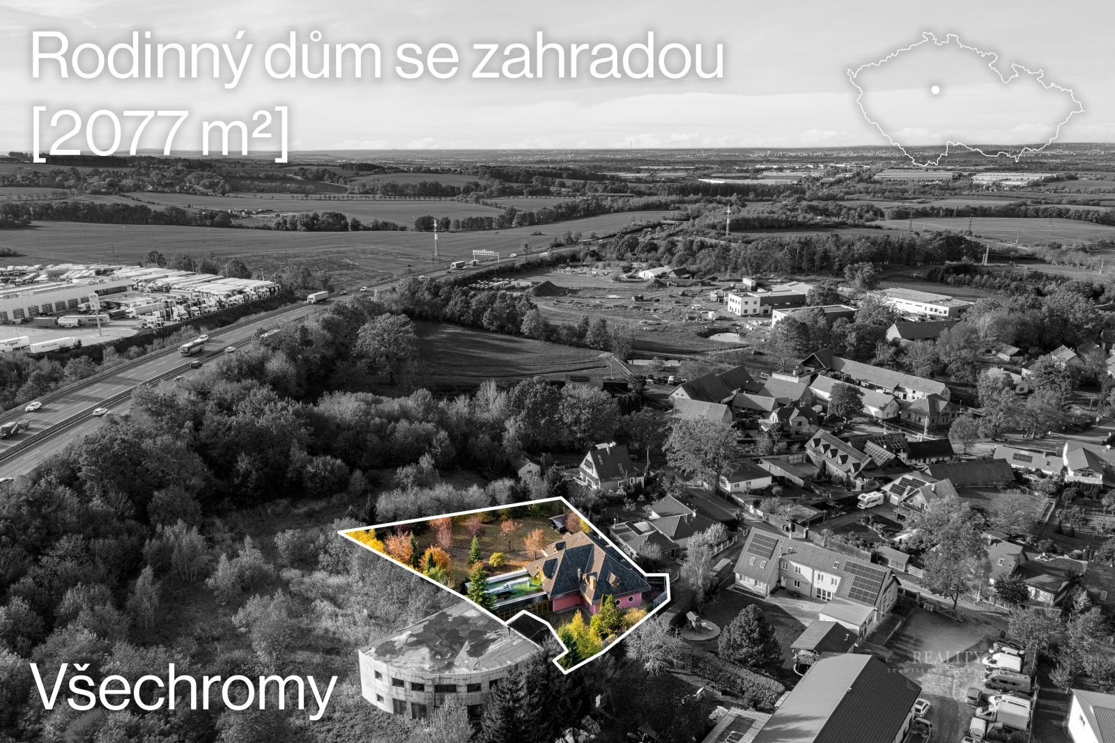 Všechromy u Strančic jsou vyhledávanou lokalitou díky klidu, přírodě a skvělé dostupnosti do Prahy (cca 15–20 minut, nájezd na D1 2 minuty).