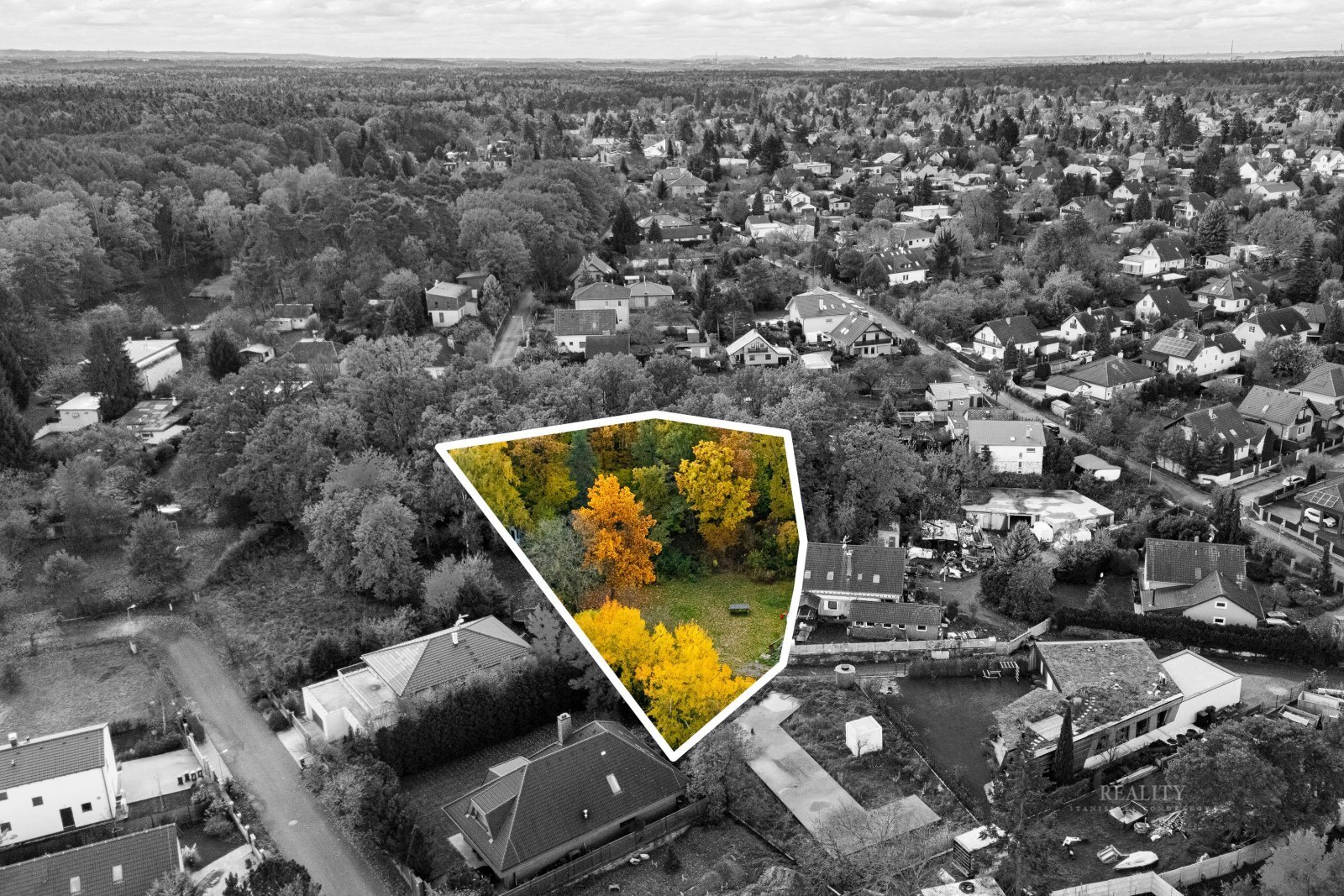 Území bylo odděleno z původního většího celku a připraveno pro výstavbu, včetně plánované parcelace a vyznačení přístupové cesty.