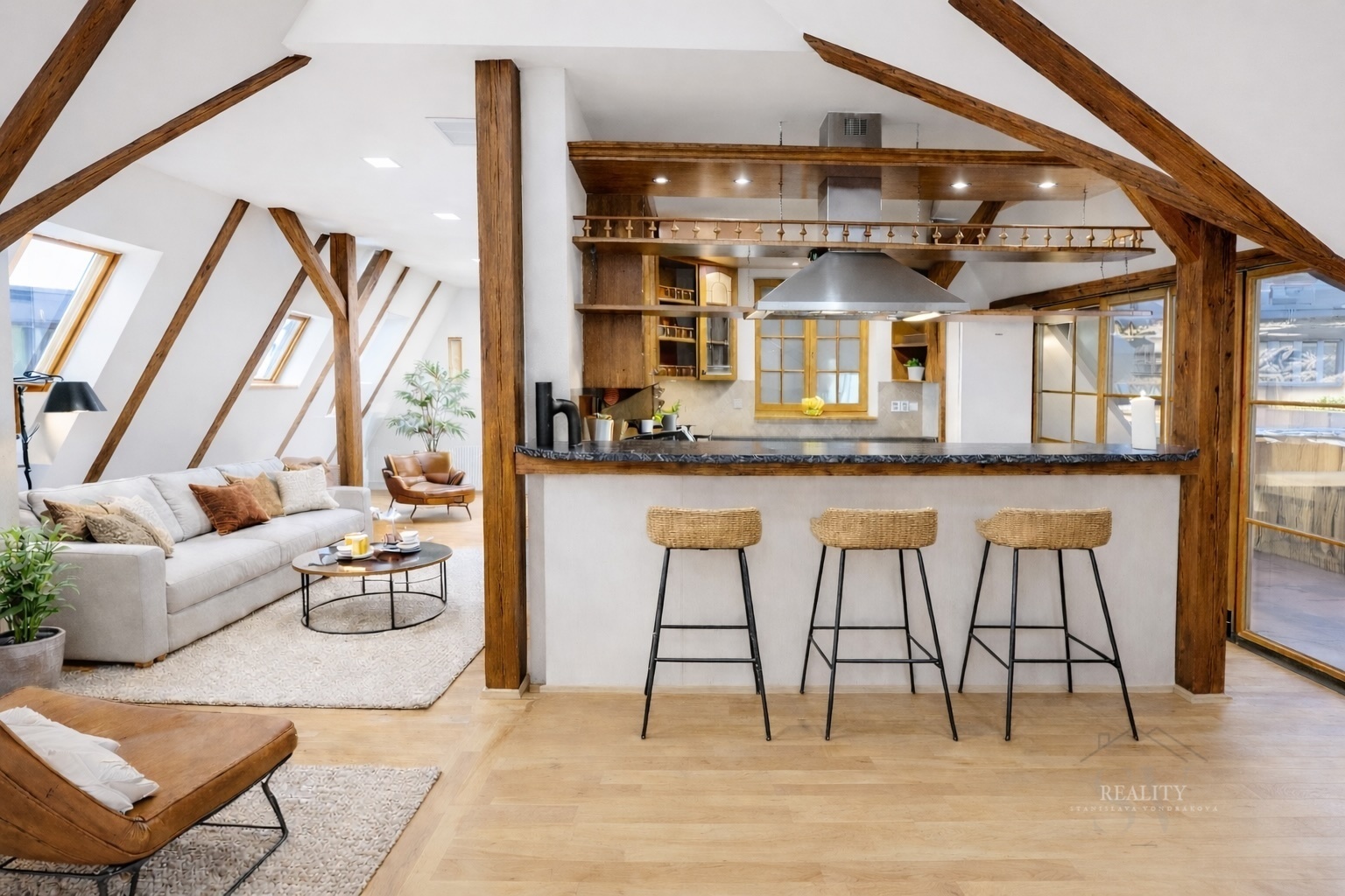 Výjimečný mezonetový byt 4+kk s krbem a terasou v srdci Starého Města