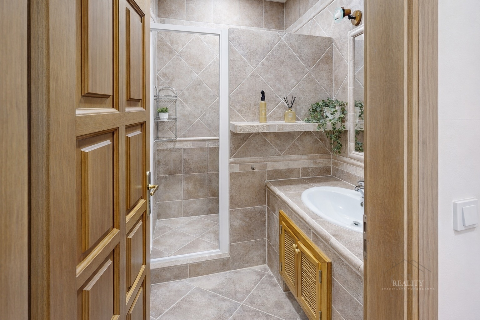 Byt prošel čerstvou úpravou (nová výmalba, renovované schodiště, nové zásuvky, nová dlažba ve vstupní hale). V obytných místnostech jsou plovoucí podlahy, v koupelnách, na WC a v šatně kvalitní keramická dlažba.