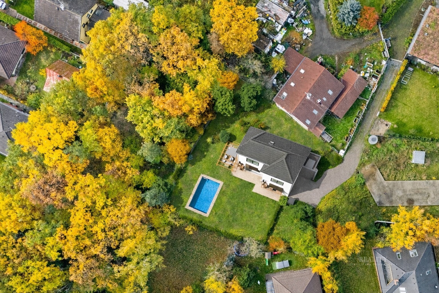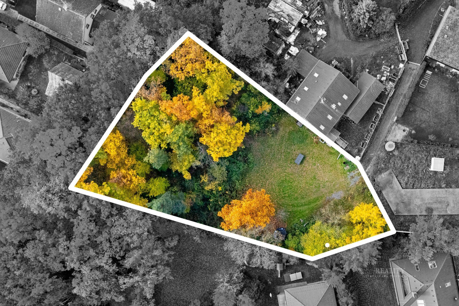 Velkorysá výměra nabízí dostatek prostoru, soukromí i příjemné přírodní zázemí. Část pozemku je porostlá vzrostlou zelení, která vytváří klidnou atmosféru a přirozené oddělení od okolní zástavby.