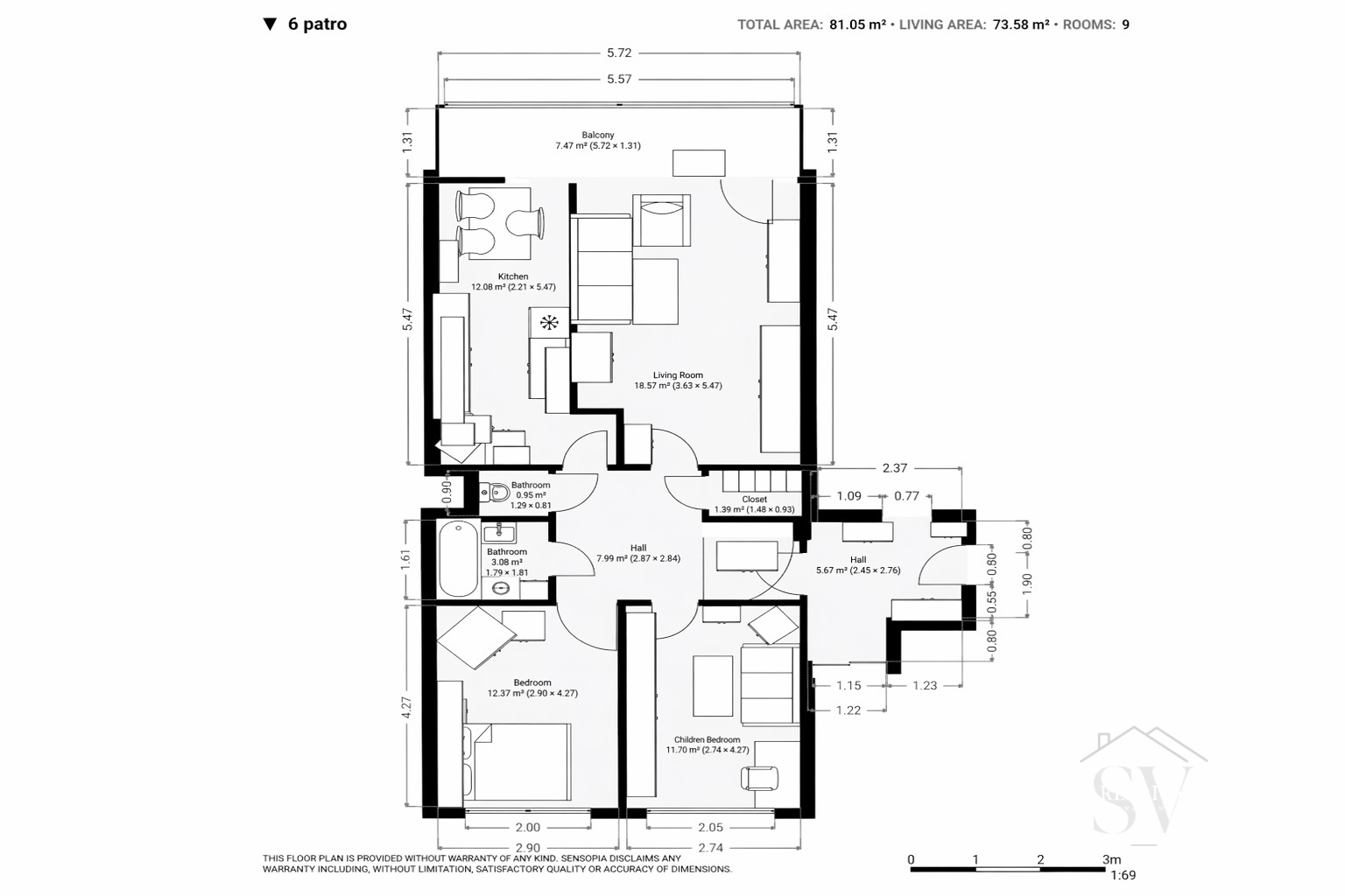 Samostatná kuchyň s jídelnou, obývací pokoj se vstupem na lodžii a dva samostatné pokoje vhodné jako ložnice, dětský pokoj nebo pracovna. Dispozice je funkční a ideální pro rodinné bydlení.